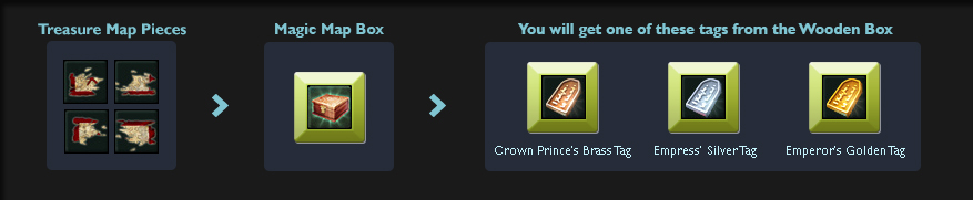 In order to enter the treasure rooms, you will need one of three different Tags: Gold, Silver or Brass. Each of the medals represents a tag. Map pieces can be found on the various bosses that appear in the stages. If you find all 4 pieces, you can combine them to earn a random Tag. You can also earn Tags by defeating the final boss of Stage 3. The Tag you earn determines the treasure room you can enter and there will be 3 tags on the boss.